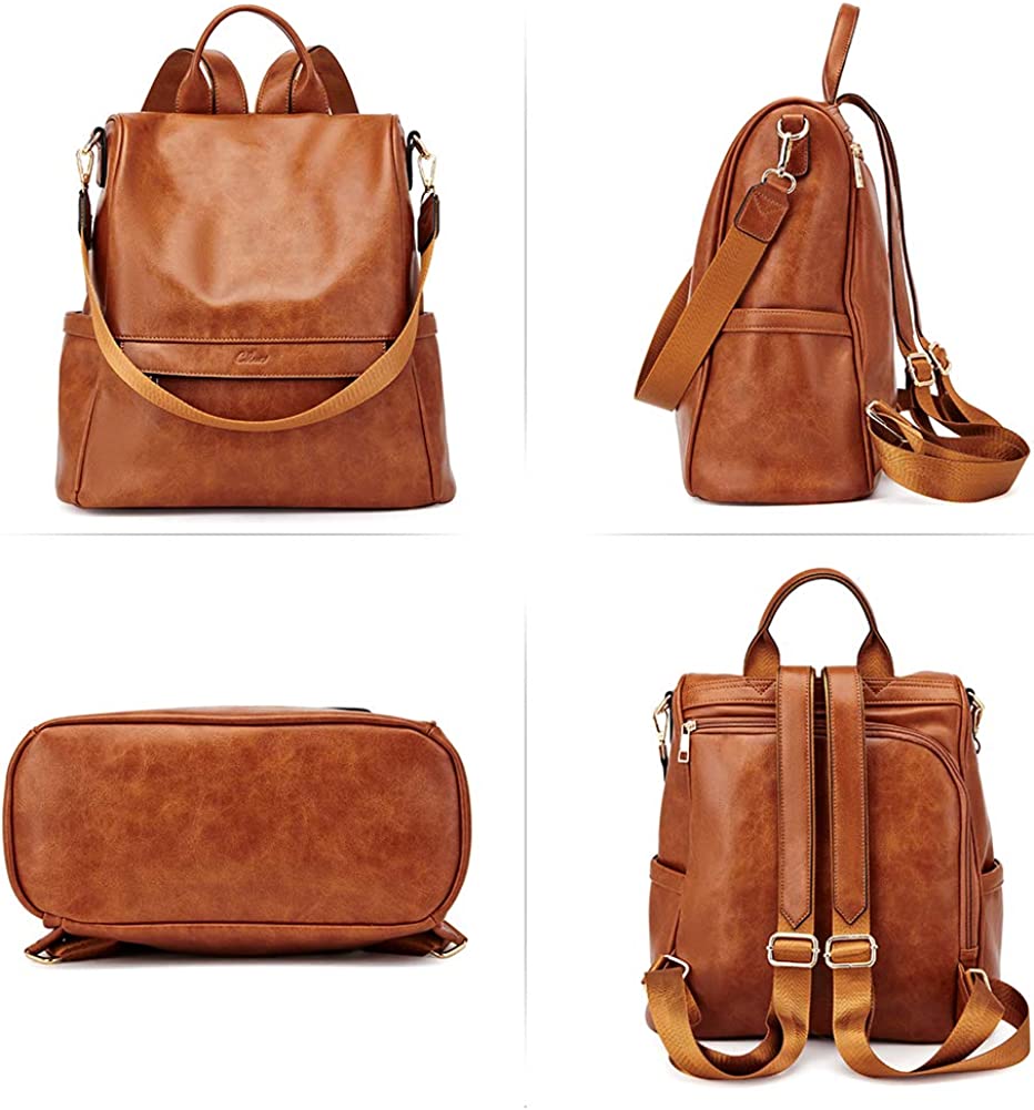 [HIGH-QUALITY MATERIAL]: Warm Tip: This backpacks made of oil wax material looks brighter, under different lighting condition, sometimes it feels shiny. This women backpack purse is made of high quality water resistant soft PU leather, metal accessories and fabric lining, which is fashionable and durable.Detachable shoulder strap made of canvas for reinforcement and durability.