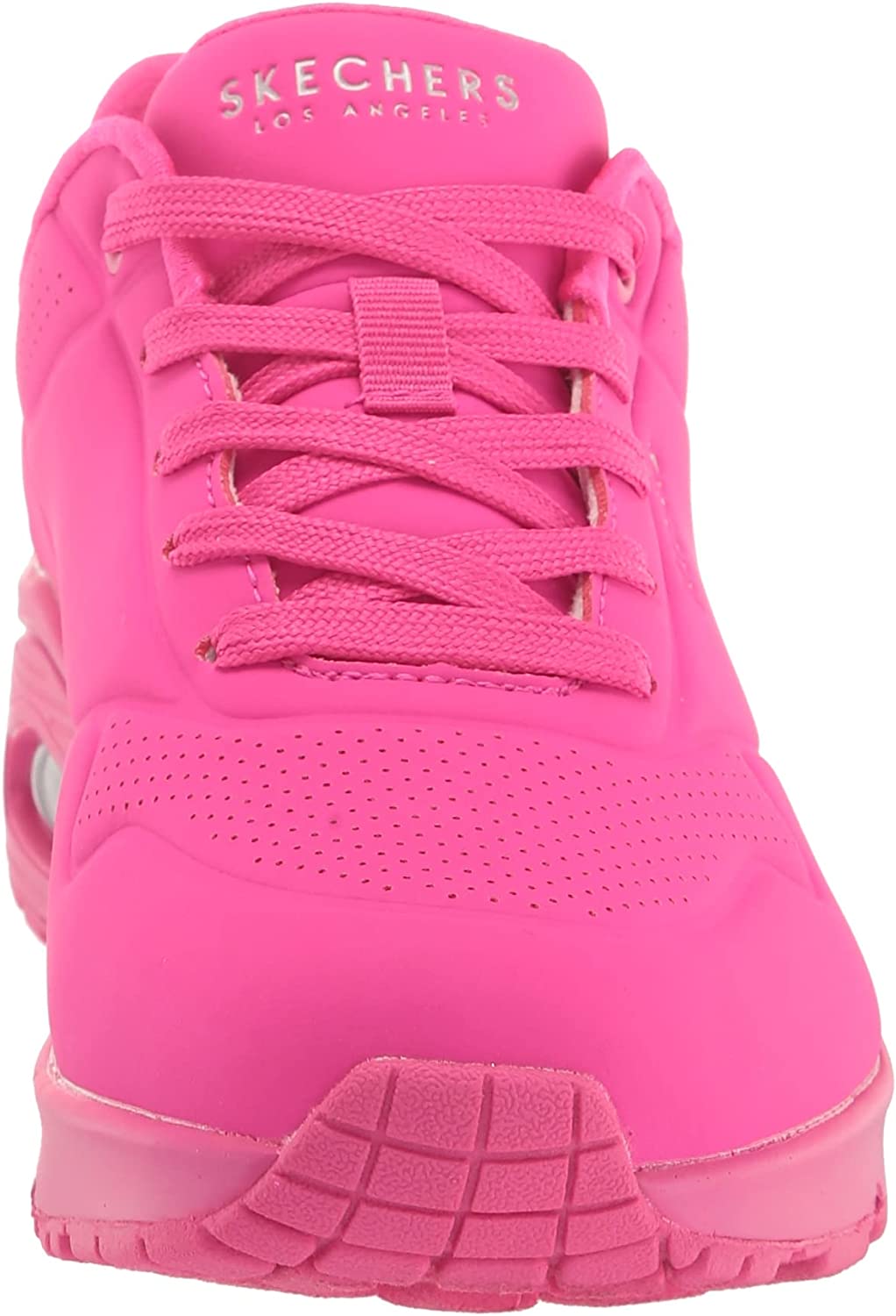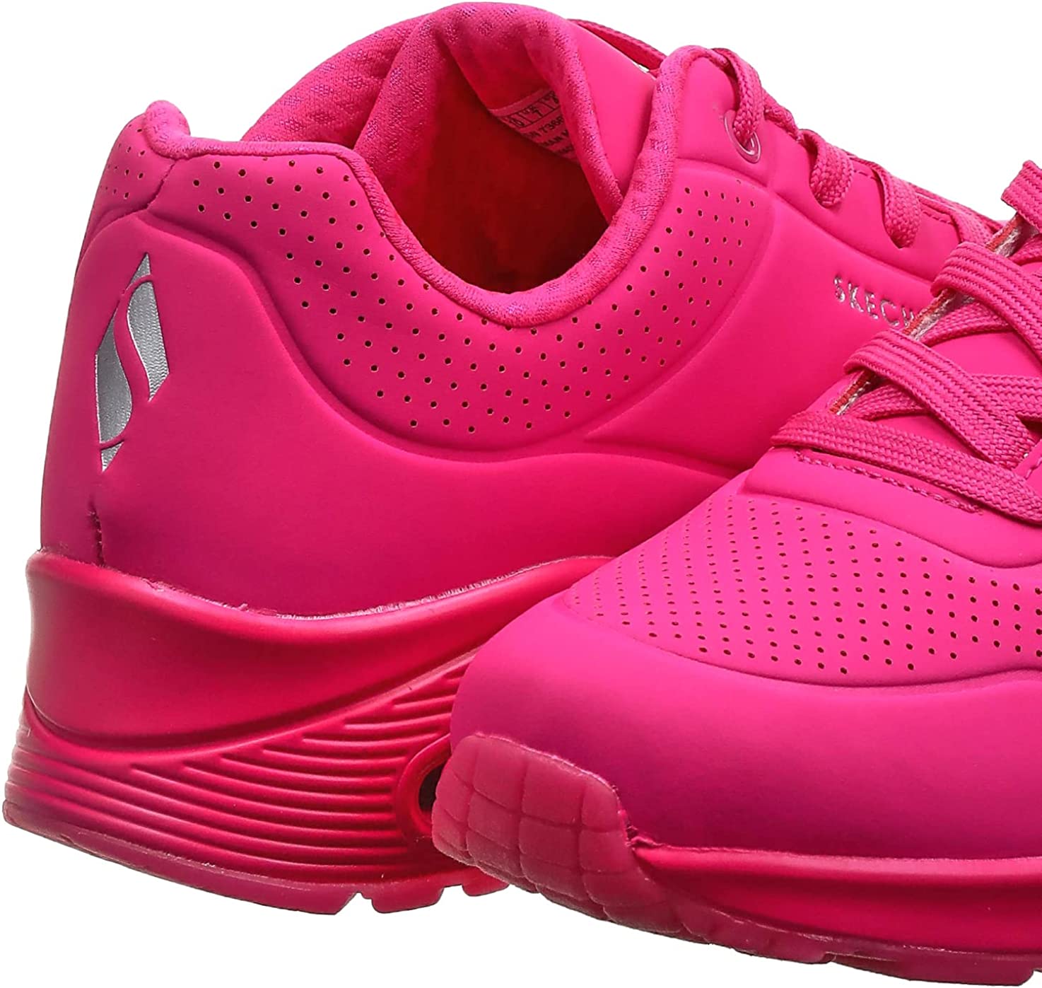 Vivid colors and classic sporty style combine in the SKECHER Street Uno - Neon Nights shoe. Smooth neon colored leather-textured 'durabuck' synthetic upper in a lace up classic fashion sneaker with stitching and perforation accents. Air Cooled Memory Foam insole, visible air cushioned midsole.