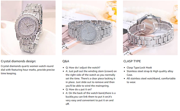 | Special features | silver watch for women, watches for women, lady watch, bling watch, diamond watch for women |