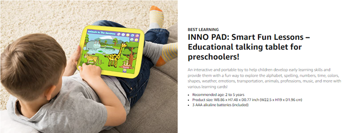 BEST LEARNING INNO PAD Smart Fun Lessons - Educational Tablet Toy to Learn Alphabet, Numbers, Colors, Shapes, Animals, Transportation, Time for Toddlers Ages 2 to 5 Years Old