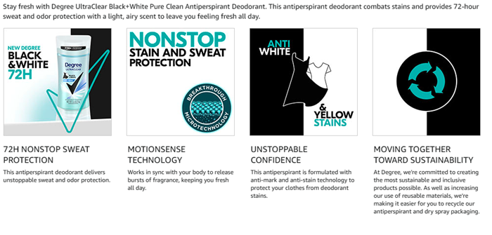 • Degree’s UltraClear Black+White Pure Clean antiperspirant deodorant stick lasts for 72 hours and protects against white marks and yellow stains, making it one of Degree's best deodorants for women