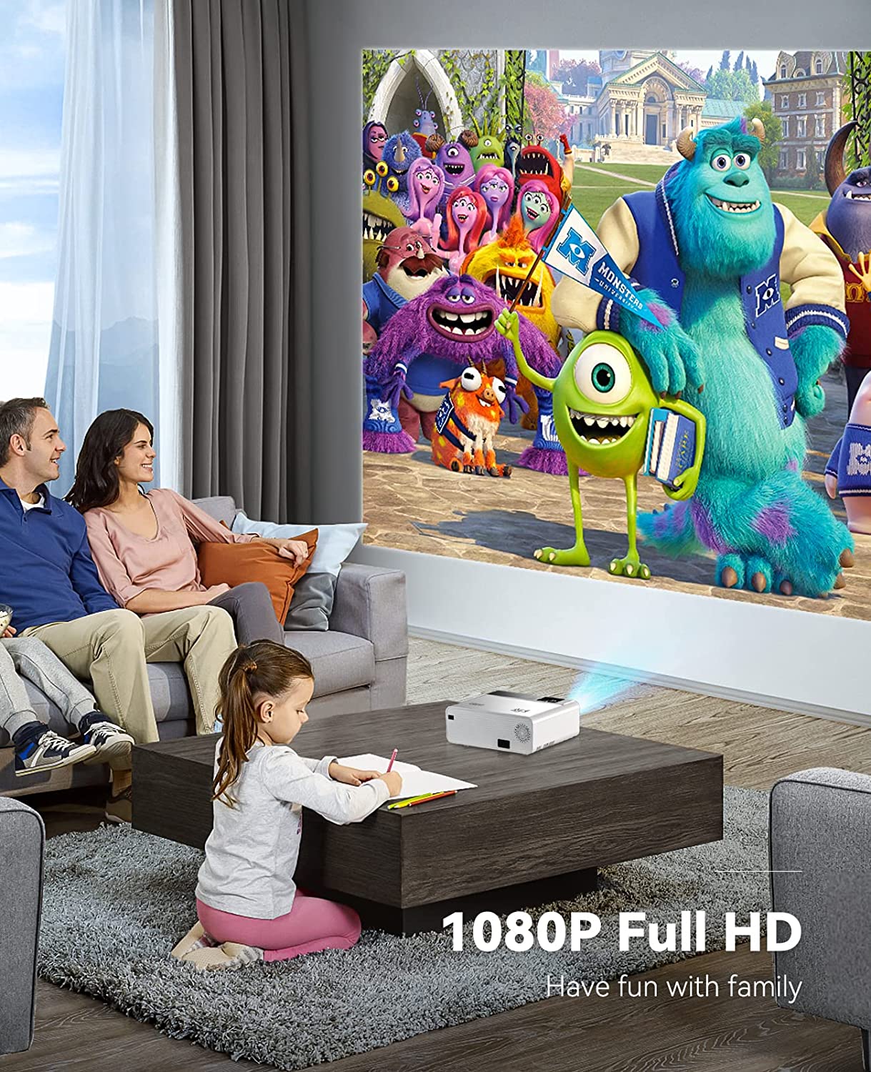 【CONNECT TO ANY DEVICE】This outdoor projector works with a wide range of devices including TV sticks, PCs, laptops, tablets, Blue-ray DVD players, TF cards, USB flash drives, PS4/XBOX/WII, media players (music, pictures, video, TXT), and headphones. You can even connect it to your iPad, iPhone, or Android smartphone (additional HDMI adapter required). Not recommended for PPT business presentations.