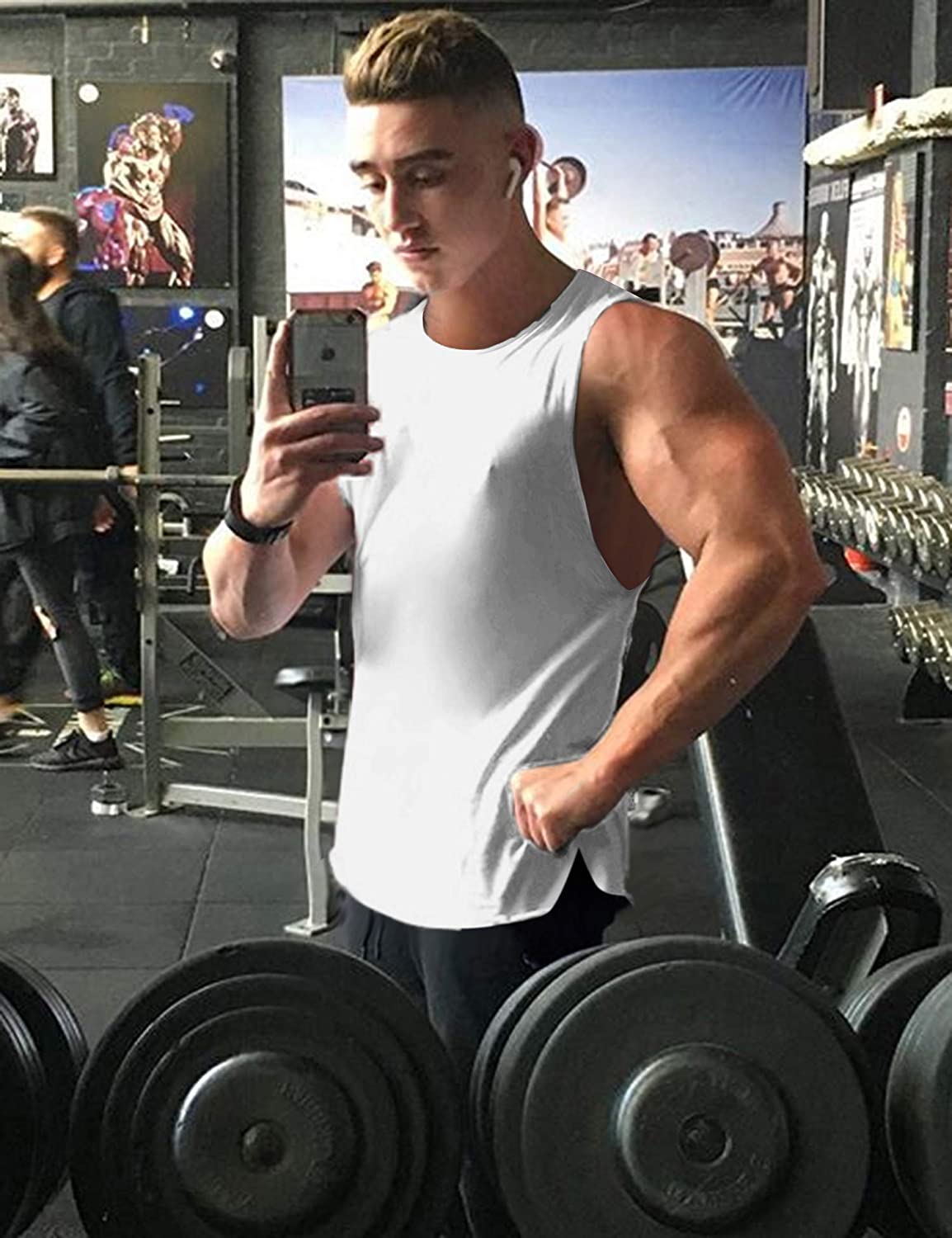 Coofandy mens longline sleeveless muscle shirt, featured with round neck, large armholes, round hem and side slits, are built to show off all your hard work in the gym with minimalist styling. Better gym clothes = more confidence in the gym & better workouts!