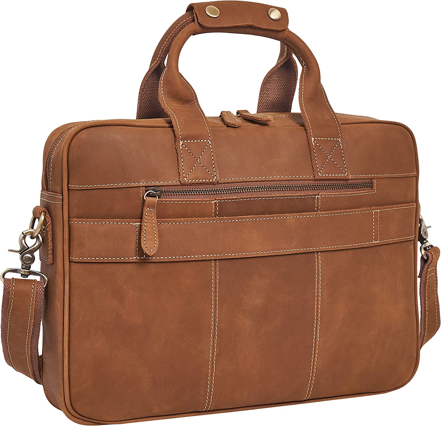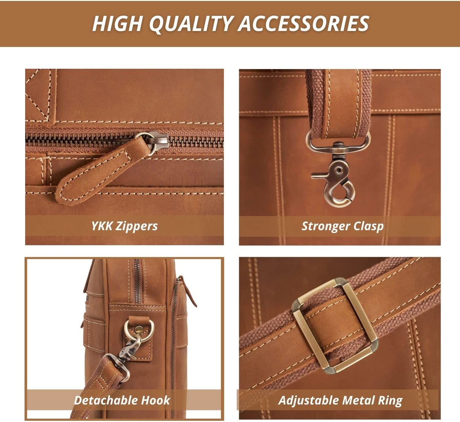 • QUALITY CRAFTSMANSHIP - The executive leather briefcase for men is constructed with fine materials and expert craftsmanship. YKK zippers, solid antique brass hardware, precision stitching with heavy bonded thread, and a superb upgraded internal lining design. An office bag for men that will withstand many years of commuting.