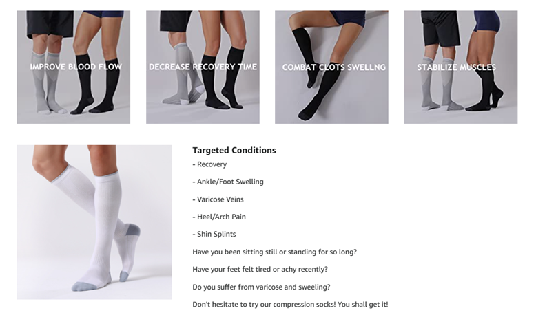 - ★Circulation & Muscle Support: 5 zones of Graduated compression socks boost venous flow, protect the Plantar Fascia, support the Achilles, improve circulation and reduce swelling, creating these compression socks comfortable and easy to wear daily. These 20-30mmHg compression support socks help relieve the shin splints, painful joint & muscle stiffness, reduce the fatigue, treat varicose veins, avoid blood pooling in the extremities, fasten the recovery of your muscle.