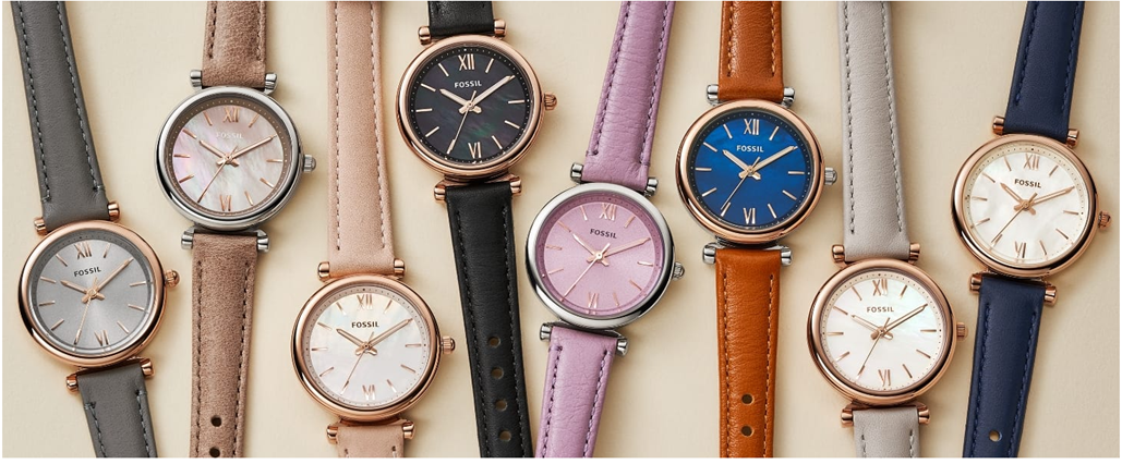 Classic style meets vintage spirit in our ladies' watch collection. Each Fossil piece is uniquely crafted with classic colors and fun details to make eye-catching watches that are built to stand out.