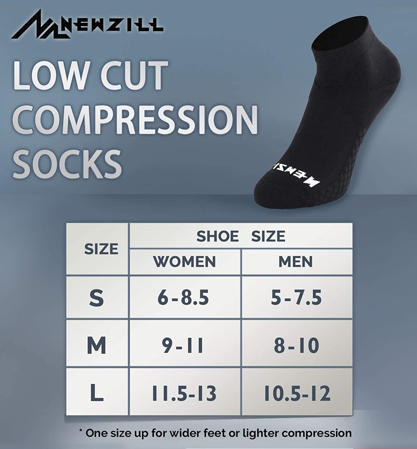 NEWZILL Ankle Compression Socks for Men & Women, Cushioned Low Cut Compression Running Socks with Ankle Support