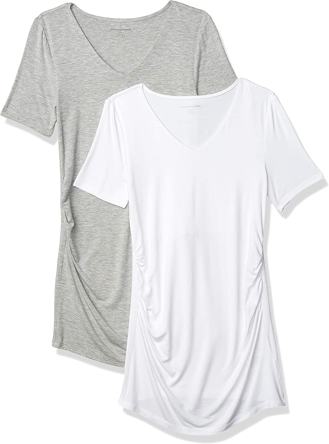 Amazon Essentials Women's Maternity Short-Sleeve Rouched V-Neck T-Shirt, Pack of 2