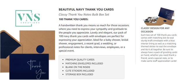 • ✔️ CLASSY DESIGN FOR ANY OCCASION: Each box set of 100 thank you cards come with matching lick-to-seal sturdy kraft envelopes with a blue interior lining as well as a matching themed sticker to seal the envelope and tie it all together. Be sure to always have a pack of greeting cards on hand, whether you need to thank a friend, send a special note, or make some staff appreciation cards!