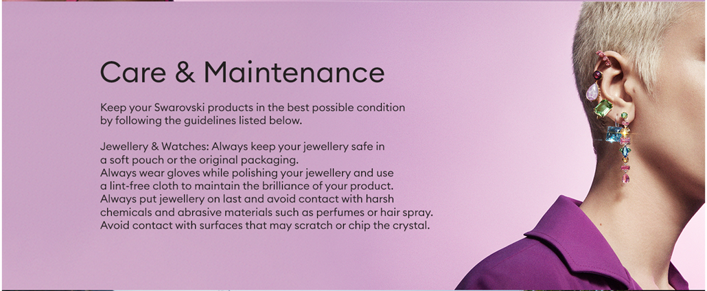• Designed to last: Swarovski jewelry will maintain its brilliance over time when simple care practices are observed; remove before contact with water, lotions or perfumes to extend your jewelry's life