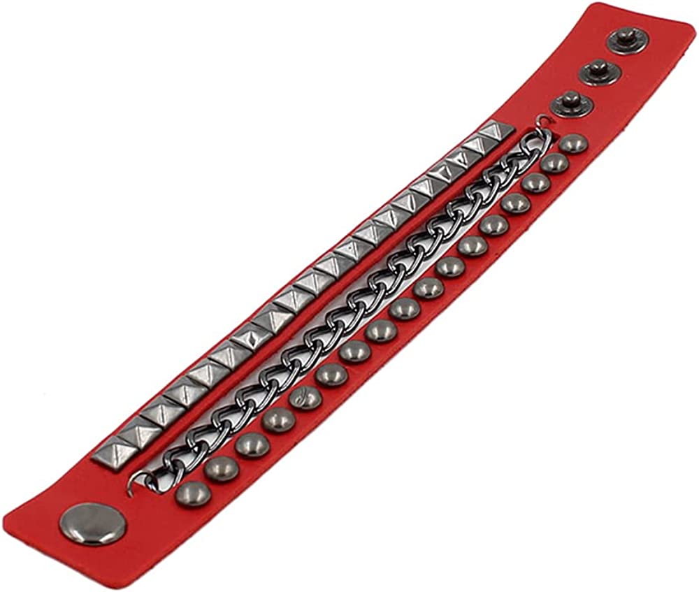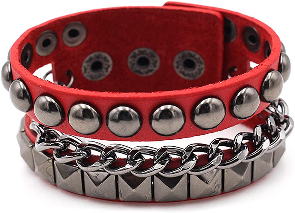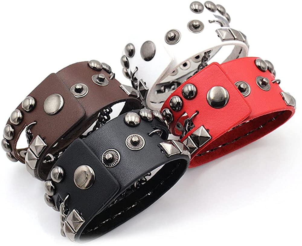 • ??TURTLEDOVE DESIGN - This Goth Rivet bracelet is made with soft Pu Leather, metal studded, Snap Button Clasp. Adjustable size: Length is 6.8 - 8.3 inches, width is 1.2 - 1.6 inches
