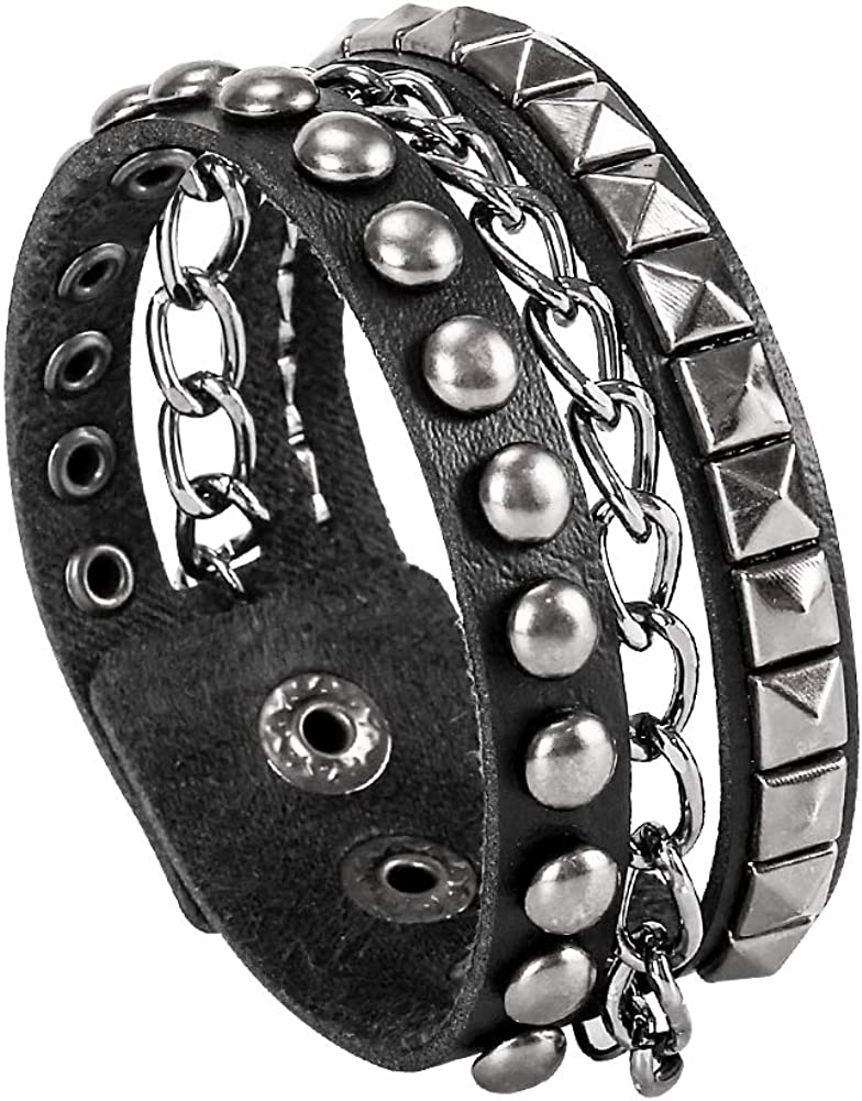 • ??FASHION PUNK STYLE - The style of thick leather bracelet is unisex punk rock biker style with wide strap. You will get the compliments. Stylish and cool design makes you stand out from the crowd