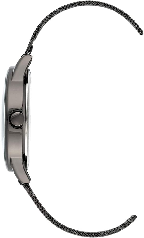 Gunmetal matte dial with floral design; rose gold-tone hands and markers