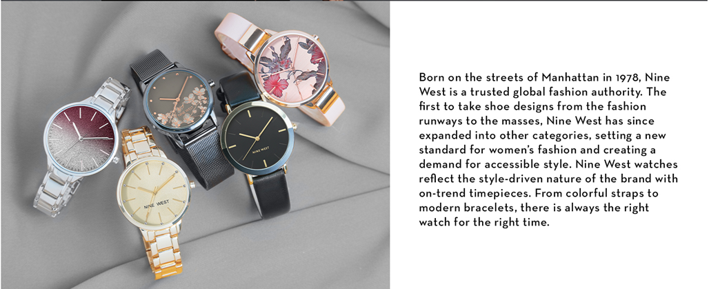 • Gunmetal matte dial with floral design; rose gold-tone hands and markers