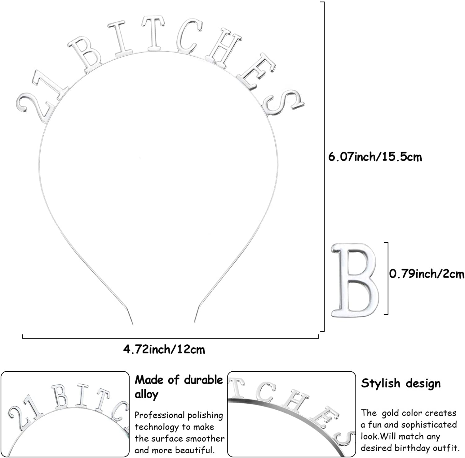 • 21st Birthday sliver tiara: the sliver birthday crown headband is mainly made of alloy, which can gently glide into your hair because it is smooth, durable to use and not easy to fade, one universal size fits most people, put it on, and you looks like a real princess of the party