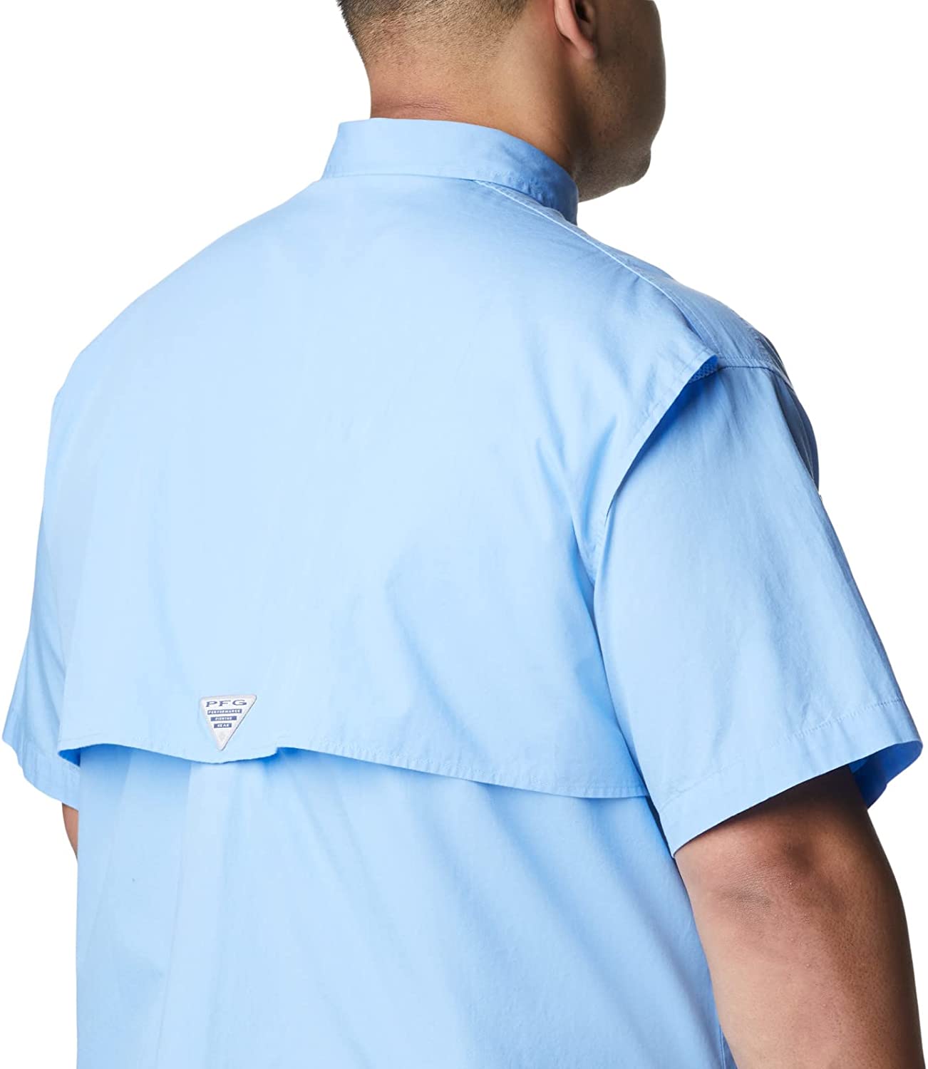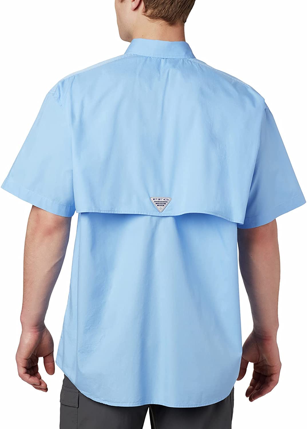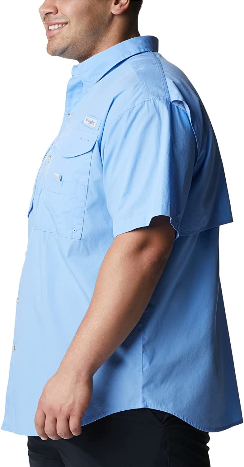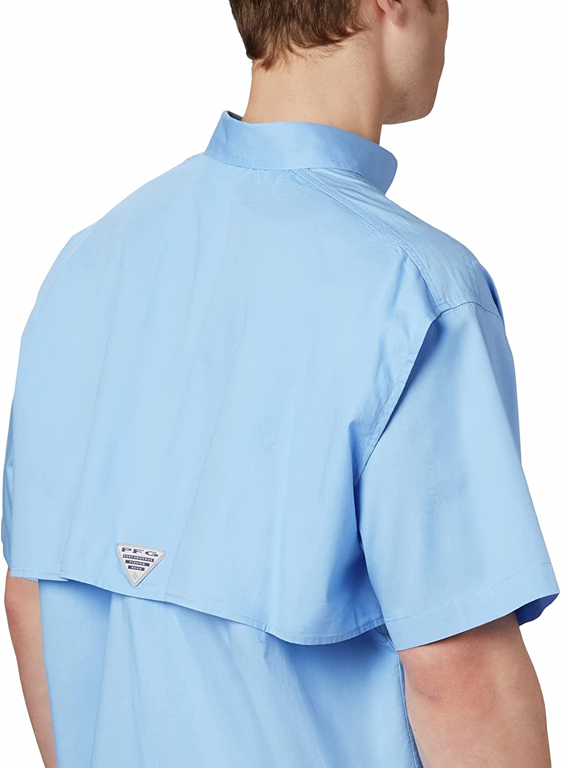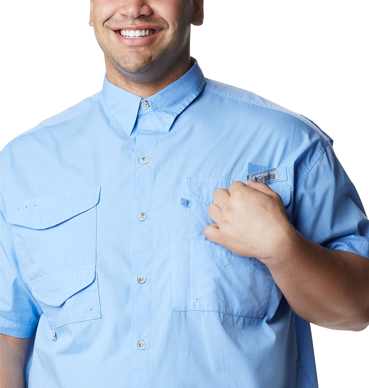 Designed to meet the needs of active anglers, this shirt is made of soft 100% cotton poplin for an easy fit.Made to fish with plenty of pockets and a rod holder to help free up your hands while you tie your next lure.A mesh-lined vented back keeps things breezy and comfortable, while a utility loop keeps gear handy.Columbia offers this short sleeve shirt in multiple colors and sizes.Extended sizing available.Relaxed Fit.To ensure the size you choose is right, utilize our sizing chart and the following measurement instructions: To determine the neck size, measure at the base or thickest part of your neck.For the chest, measure at the fullest part of the chest, under the armpits, and over the shoulder blades, keeping the tape measure firm and level.