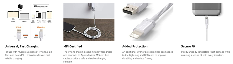 • DURABLE DESIGN: An additional layer of protection has been added to the Lightning and USB ends to improve durability and reduce fraying