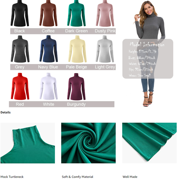 Super Soft, lightweight, slim fit, long sleeve, turtleneck