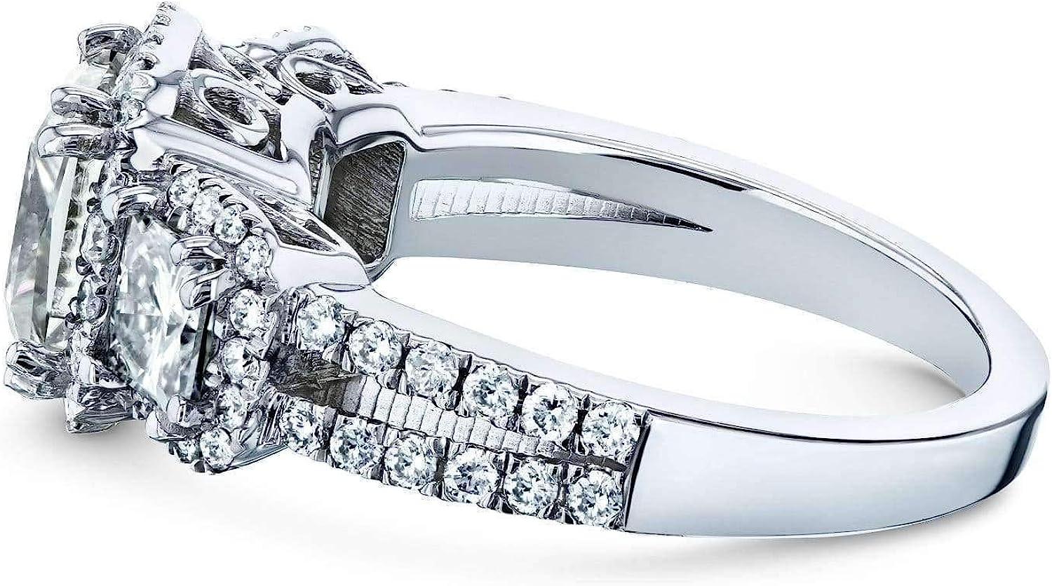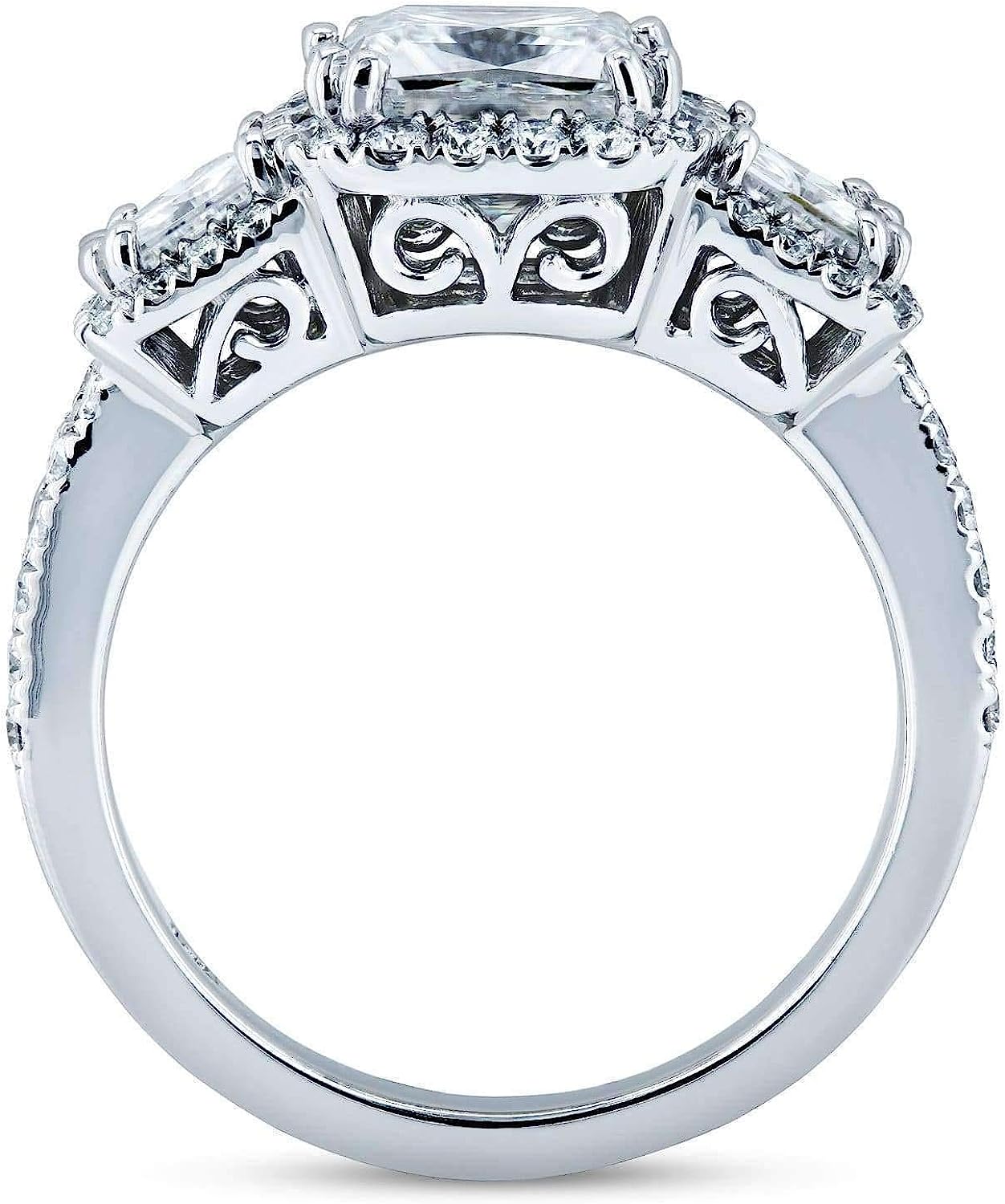 Kobelli 2 4/5-CTW Princess Moissanite Halo 3-Stone Engagement Ring 14k White Gold