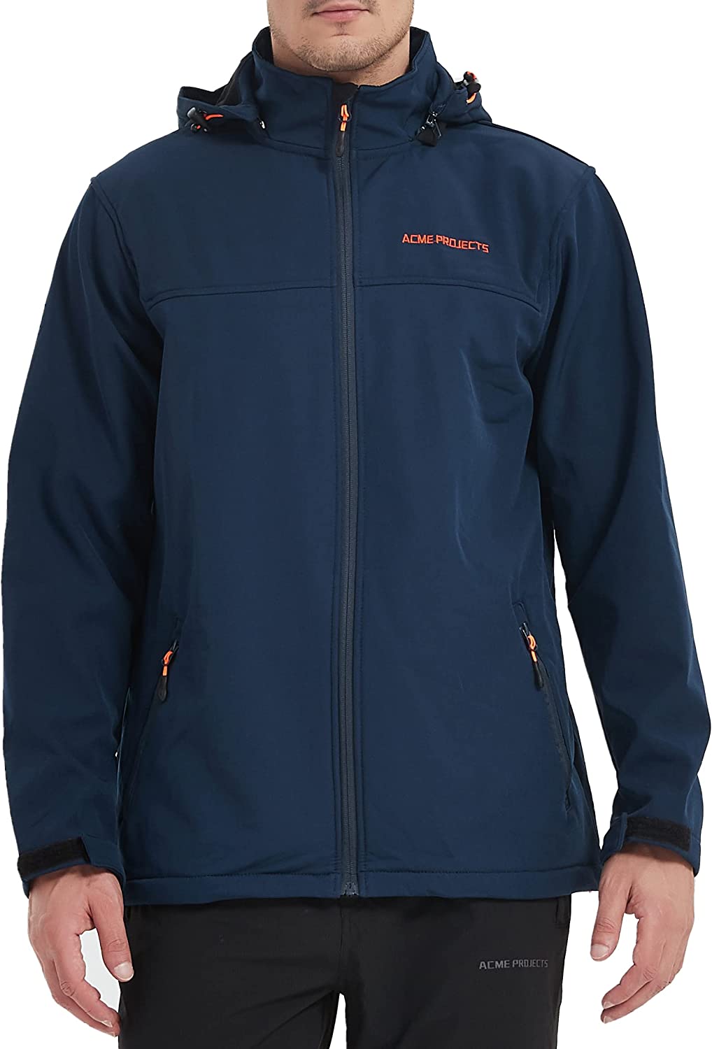 Acmelogy Men's Fleece Lined Softshell Jacket with Detachable Hood, Waterproof, Breathable, 8000mm/5000gm, YKK Zipper