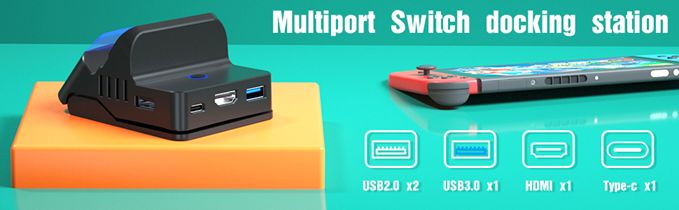 • Multiport Switch Docking Station:Switch docking station with USB2.0 X2,USB3.0 X1,HDMI X1,Tpce-c X1 port.Switch LAN adapter plugs into ultra-high transfer speed USB3.0 port. Increase your advantage in the game.Switch docking station compatible gamecube adapter support multiplayer online games. Playing Super Smash Bros with friends or family during game time.
