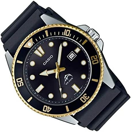 Casio Men's Diver Inspired Stainless Steel Quartz Watch with Resin Strap, Gold, 25.6 (Model: MDV106G-1AV)