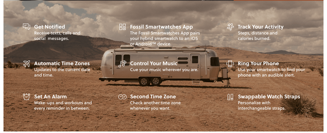 • Simply plug the provided USB cord into a power source and align the pins on the magnetic pad to the metal rings on the back of your Hybrid Smartwatch HR to charge (up to 80% in one hour)