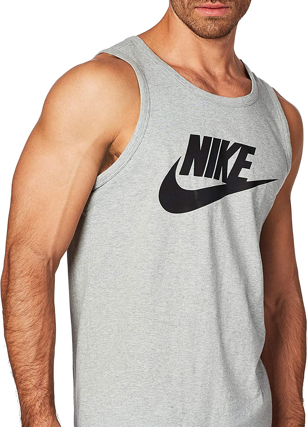 The Nike Men’s Icon Futura Tank Top provides the fit and cut to deliver ample comfort for all. Its banded arms and legs resist stretching and excessive wear, ensuring this sleeveless shirt retains its fit for the long haul. With a regular fit cut, this tank top fits all body types perfectly without feeling too snug or baggy. Cotton construction delivers superior comfort and durability while also staying breathable to keep you cool. Keeps your body cool on even the hottest days. The regular fit cut ensures this sleeveless shirt looks great on any occasion, whether you’re on the field or the sidelines. Screen printed Nike logo on the front shows your love of the brand and adds a touch of style to this toned down tank top.