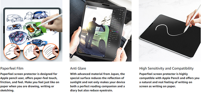 - 【Anti Glare】: Matte paperfeel surface reduces the glare and gives clear view of your screen. Paperfeel screen protector designed specifically for Apple Pencil users. Make you feel like just writing, sketching or drawing on paper without losing the paper feeling.