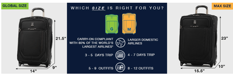 Pack to the max with luggage that is truly all your own. The max carry-on expandable Rollaboard is designed for total packing versatility and customizable with a variety of interchangeable Travelpro exclusive zip-in organizers. Included inside the lid is a removable zip-in garment organizer, ideal for storing folded shirts, dresses and jackets. Also available for purchase separately are four additional coordinating Travelpro exclusive zip-in organizers-a laundry organizer for bathing suits, workout clothes and other damp items, A packing cubes organizer for shorts, shirts and accessories, A suitor organizer to keep hanging clothes wrinkle-free and an all-in-one organizer for wet and dry storage (each sold separately). created for domestic travel on larger aircraft, this bag is sized to max out the sizer bin and fit In the overhead bins of most major yours. Airlines. It also features a tip-resistant zippered expansion to increase packing space up to two inches, but be careful not to overpack the exterior pockets and risk making it too big for the sizer bin. Enjoy total convenience with a built-in USB port and dedicated exterior power bank pocket, exterior padded laptop pocket and removable TSA-compliant toiletries bag that stores perfectly in a same-sized exterior pocket. Two ultra-strong, oversized, high-performance ball bearing wheels roll smoothly over any terrain led by a four-stop, height-adjustable PowerScope handle, while the add-a-bag strap and metal j-hook let you carry additional bags hands-free. Built for professional-grade dependability With robust corner armor, skid guards and heavy-duty wheel housings, crew versapack is the civilian version of the luggage flight crews use, tested to meet the same superior quality and durability standards. This Rollaboard is further backed by the comprehensive built for a lifetime limited warranty with our trusted companion promise.