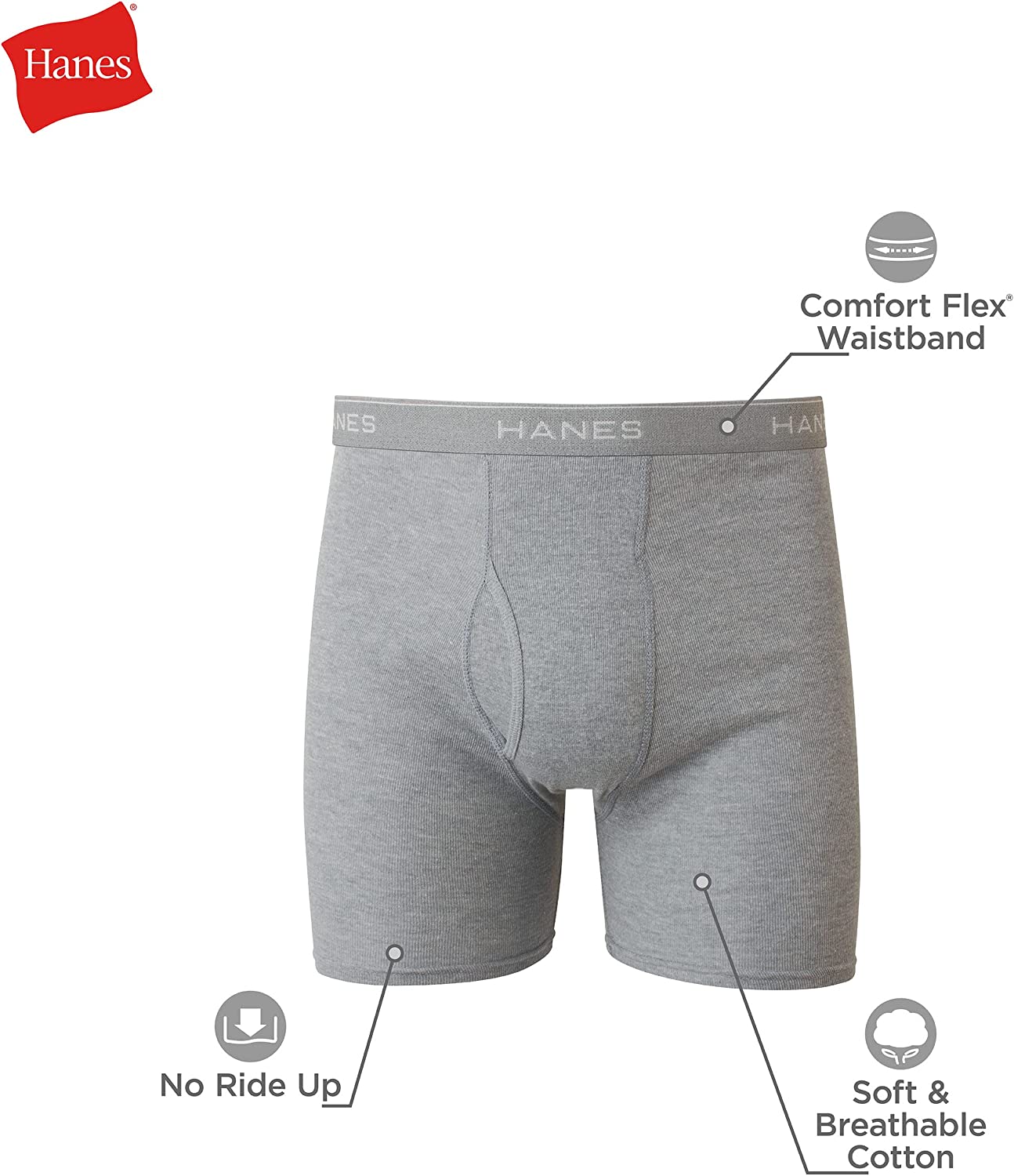 • COMFORT YOU DESERVE – A Comfort Flex waistband helps your men's underwear boxer briefs flex and move with you. No-ride-up construction means your underwear should stay firmly in place.