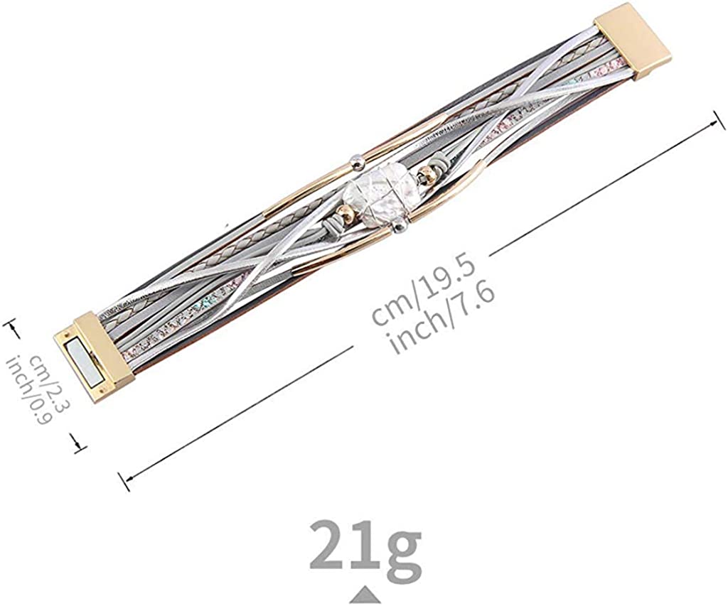 • 【SUITABLE FOR MOST WRISTS】 This women leather bracelet measures about 7.67 inches in length and 0.59 inches in width, fit for most women and girls' wrist. (Approximately fit for 5.5''-6.7" wrists) Because of light weight, it is comfort to wear and you will never feel tired or boring.