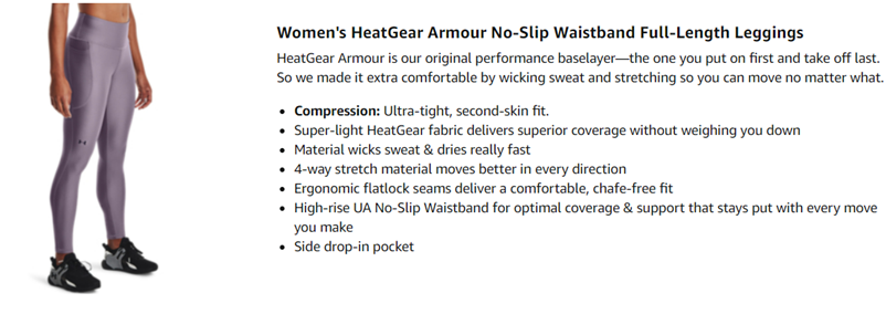 HeatGear® Armour is our original performance baselayer—the one you put on first and take off last. So we made it extra comfortable by wicking sweat and stretching so you can move no matter what. Our Most Legendary: Super-light HeatGear® fabric delivers superior coverage without weighing you down. Material wicks sweat & dries really fast. 4-way stretch construction moves better in every direction. Ergonomic flatlock seams deliver a comfortable, chafe-free fit. High-rise no-slip waistband for optimal coverage & support that stays put with every move you make. Side drop-in pocket. Inseam: 29"". Compression:Ultra-tight, second-skin fit. 87% Polyester/13% Elastane.