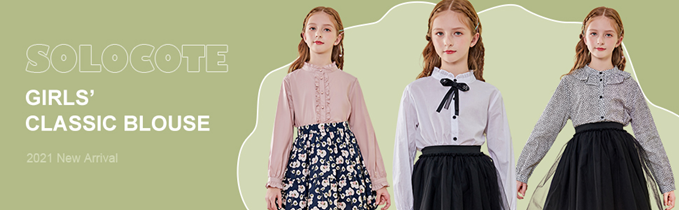 SOLOCOTE Girls White Blouse Ruffle Long Sleeve Button Down Shirts Princess Cotton Loose Soft Tops Spring and Summer 3-14Y
