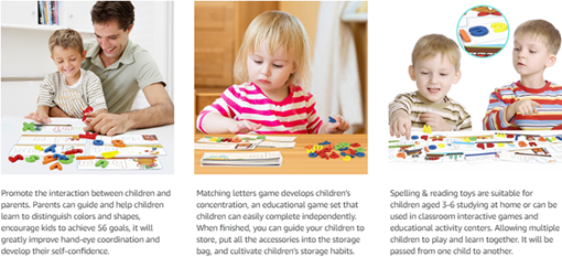 It can help your child use multiple feelings to get the joy of learning from the game. It is very suitable for cultivating pre-school children's color & shape recognition ability and hand-eye coordination ability. Allowing children to have close interaction and communication with other children or parents, to improve social skills. Suitable for boys and girls ages 3-6 years old who generate interest in learning from exploration game. This is the preferred educational toy for most parents in the United States.