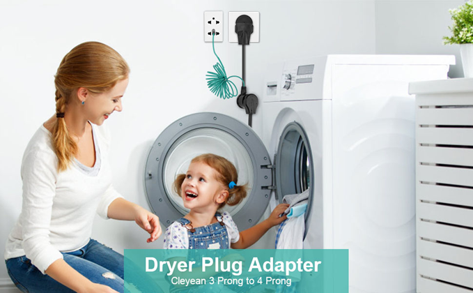 - Dryer Adapter Cord: Connect the 3 prong Nema 10-30P male plug to the female wall outlet of Nema 10-30R, and plug your dryer 4 prong Nema 14-30P plug to the female cable socket (Nema 14-30R).
