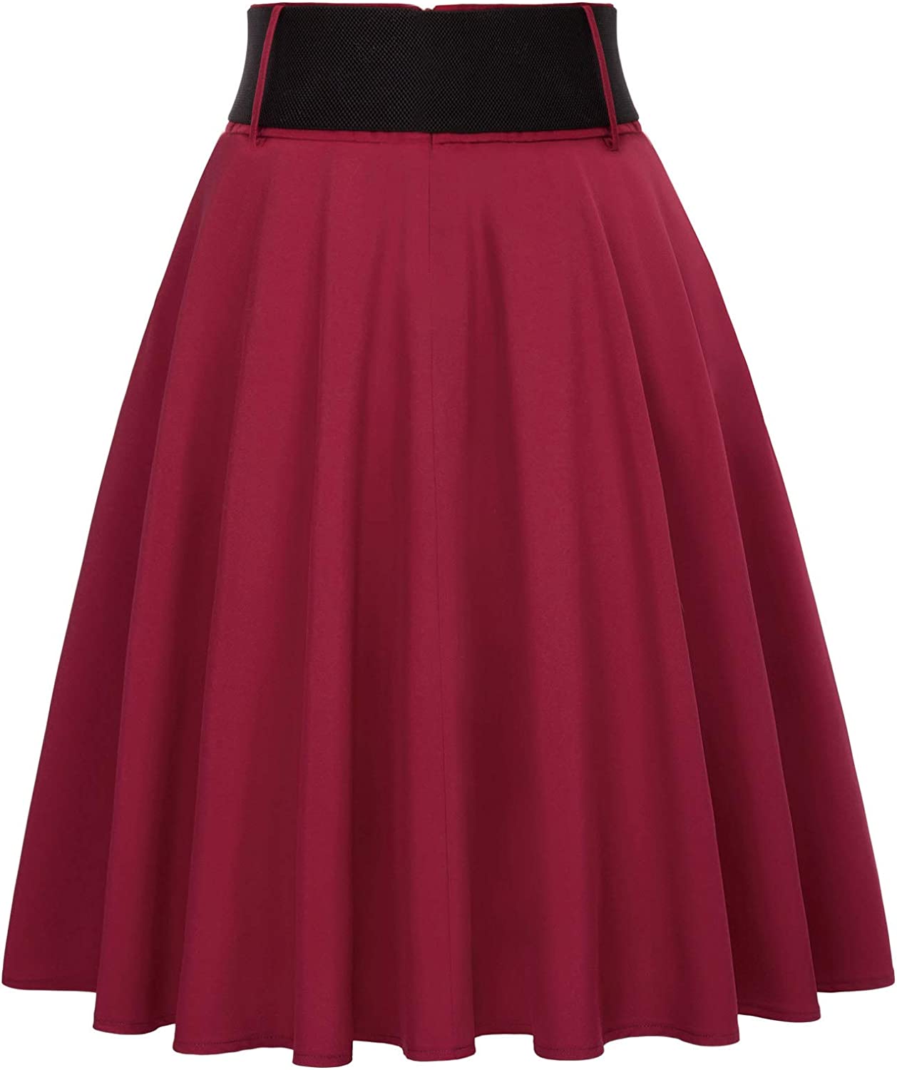Belle Poque Women's High Waist A-Line Pockets Skirt Skater Flared Midi Skirt