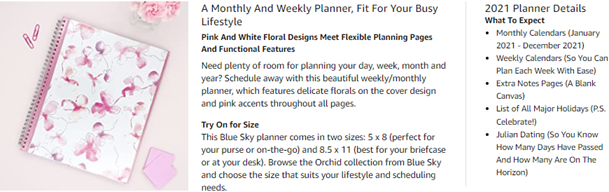 • January 2021 - December 2021 stylish day planner, featuring 12 months of monthly and weekly pages for easy year-round planning and scheduling; 6 bonus monthly pages (July 2020 - December 2020) are included