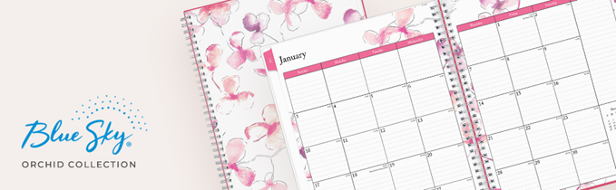 The Orchid Collection from Blue Sky supports Breast Cancer Awareness. This stylish planner will keep you organized everywhere you go. Simple page designs add a touch of elegance and offer plenty of room for all of your important information. Monthly calendar tabs allow for easy access to each month’s plans while weekly views offer ample writing space for detailing each day. Stay on track throughout the year with this planner dated January 2021 - December 2021. High quality white paper provides clean writing space for jotting down your appointments, to-dos and reminders. Durable coated tabbed dividers are long lasting and make accessing information a breeze. Use this dated planner to stay on track for appointments, and to jot down notes and ideas in one place. Premium quality covers and twin-wire binding. Blue Sky creates modern and sophisticated organizational planners and calendars to fit the scheduling needs of busy people - whether business professionals, college students, teachers, or anyone with appointments to make note of. Keep your life organized with our full line of products including desk pad calendars, wirebound tabbed weekly and monthly planners with contacts and notes pages to accommodate your scheduling needs, and laminated two-sided wall calendars, all in a variety of colors and patterns to suit your lifestyle and personality.