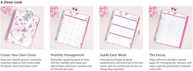 • Weekly view pages offer ample lined writing space for more detailed planning, allowing you to keep track of your appointments, to-dos, reminders and ideas