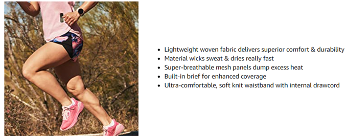 Lightweight woven fabric delivers superior comfort & durability. Material wicks sweat & dries really fast. Super-breathable mesh panels dump excess heat. Built-in brief for enhanced coverage. Ultra comfortable, soft knit waistband with internal drawcord. Crossover, shaped hem for a streamlined look. Reflective logo.Inseam: 3.5".