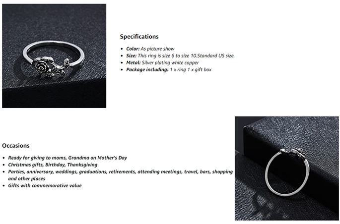 • [ SAFETY MATERIAL ] : Using high quality copper with environmentally silver plated, great ring for women, girls.