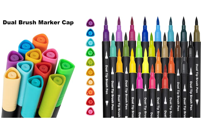 - DUAL BRUSH COLORING MARKERS: Piochoo dual tip markers feature both a fine tip and flexible brush tip which will bring much more fun to your art projects.You can create ultra fine line by 0.4mm hard tip,and fine ,medium or bold strokes by a change in brush pressure.