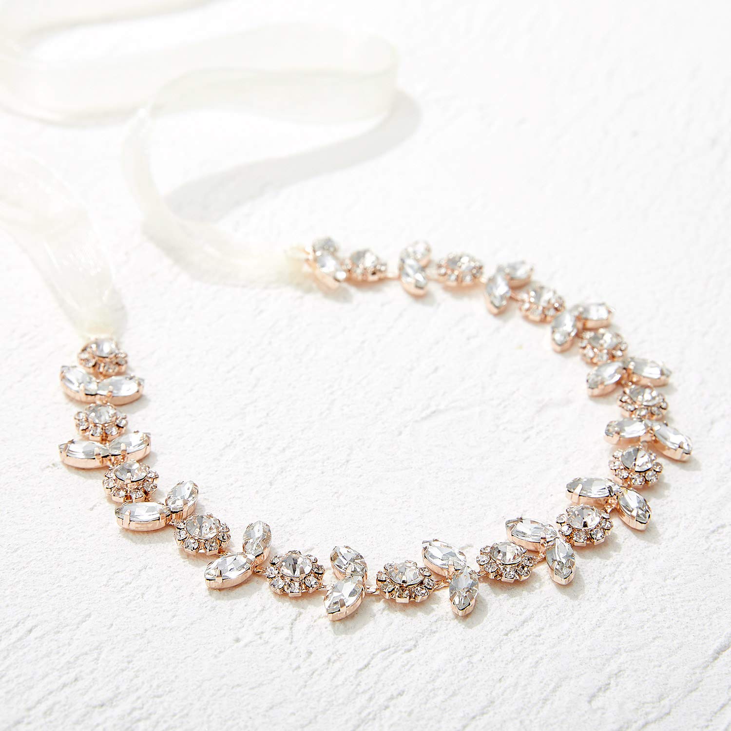 SWEETV Rose Gold Flower Girl Headband for Wedding Baby Girl Headpiece Princess Crystal Floral Hair Accessories for Birthday Party, Photography