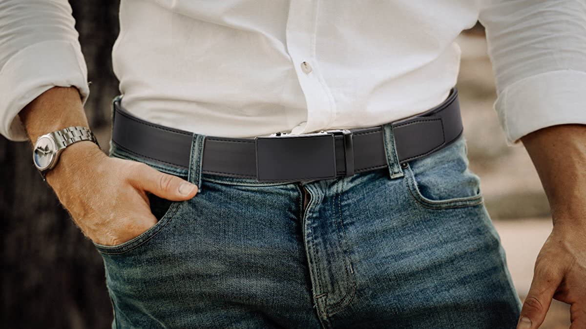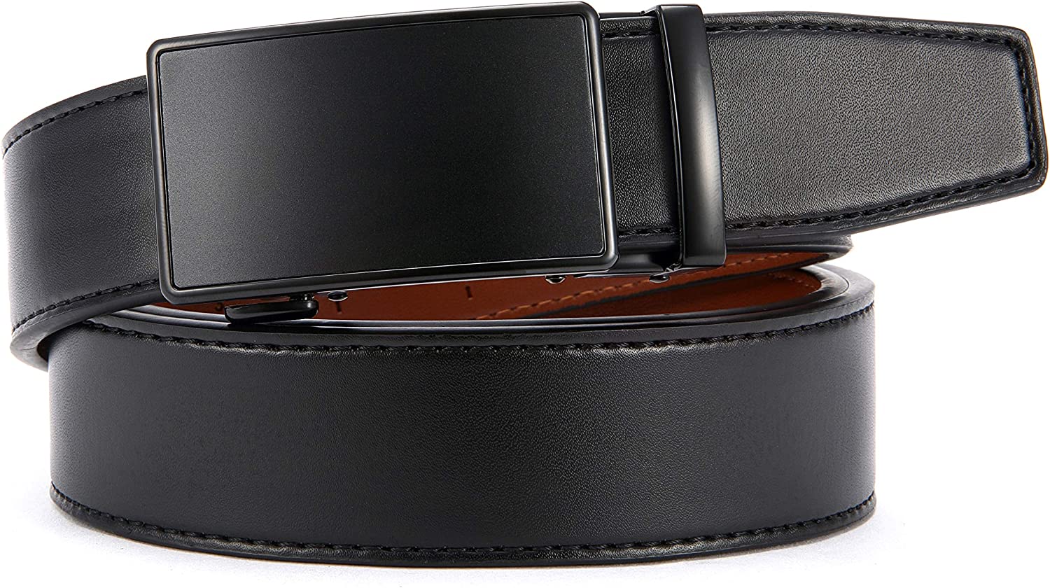 • EASY TO USE - Slide the leather belts for men into the buckle, and click on the buckle to lock it automatically. Gently push the lever on the side of the automatic buckle, and pull the casual belt to release. Simple, smooth, and sleek!