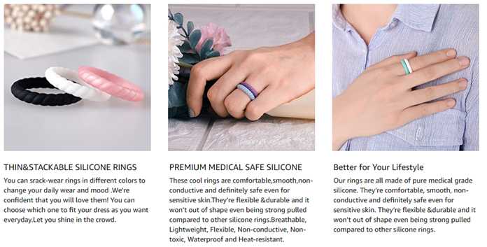 • PREMIUM SILICONE - Silicone ring women is all made of pure medical grade silicone.Rings for women are comfortable,smooth,non-conductive and definitely safe even for sensitive skin.Rubber rings are flexible &durable and silicone ring won’t out of shape even being strong pulled compared to other wedding band for women.