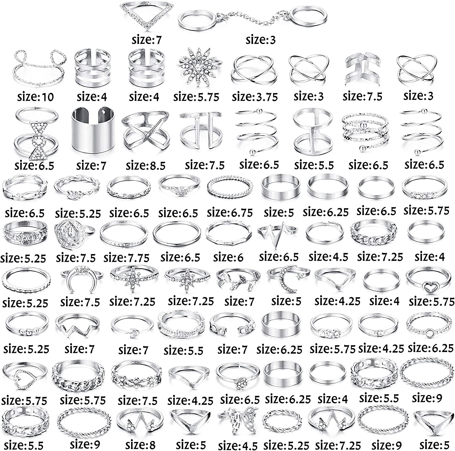 • ? Knuckle Ring Set ? One Order Includes 70PCS Silver Tone Knuckle Rings in Various Styles, Simple Rings, Crystal Rings, Criss Cross Ring and Rope Rings, Can Be Matched with a Wide Variety of Clothes, Affordable Price and Quality Workmanship