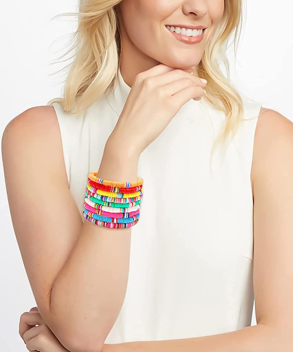 - ★ Fabulous Summer Bracelets -- Look chic and feel elegant with this stretch bracelet set. Whether you’re soaking up the sunshine on a beach, sightseeing on a city break or dancing 'til dawn at a festival, its time for you to pile on the shine with some rainbow heishi bracelet bangles. Wear them together or layer with other beach bracelets for a chic summer vibe