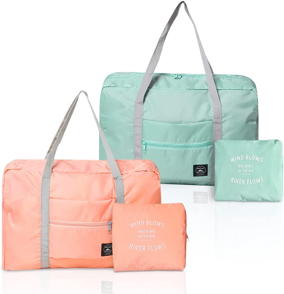 SITAKE 4 Pcs Foldable Travel Duffel Bag, Waterproof Lightweight Carry-on Bags, Suitable for Overnight, Holiday, Shopping, Weekends, Outing, Gym(Wine Red/Navy Blue/Sky Blue/Light Pink)
