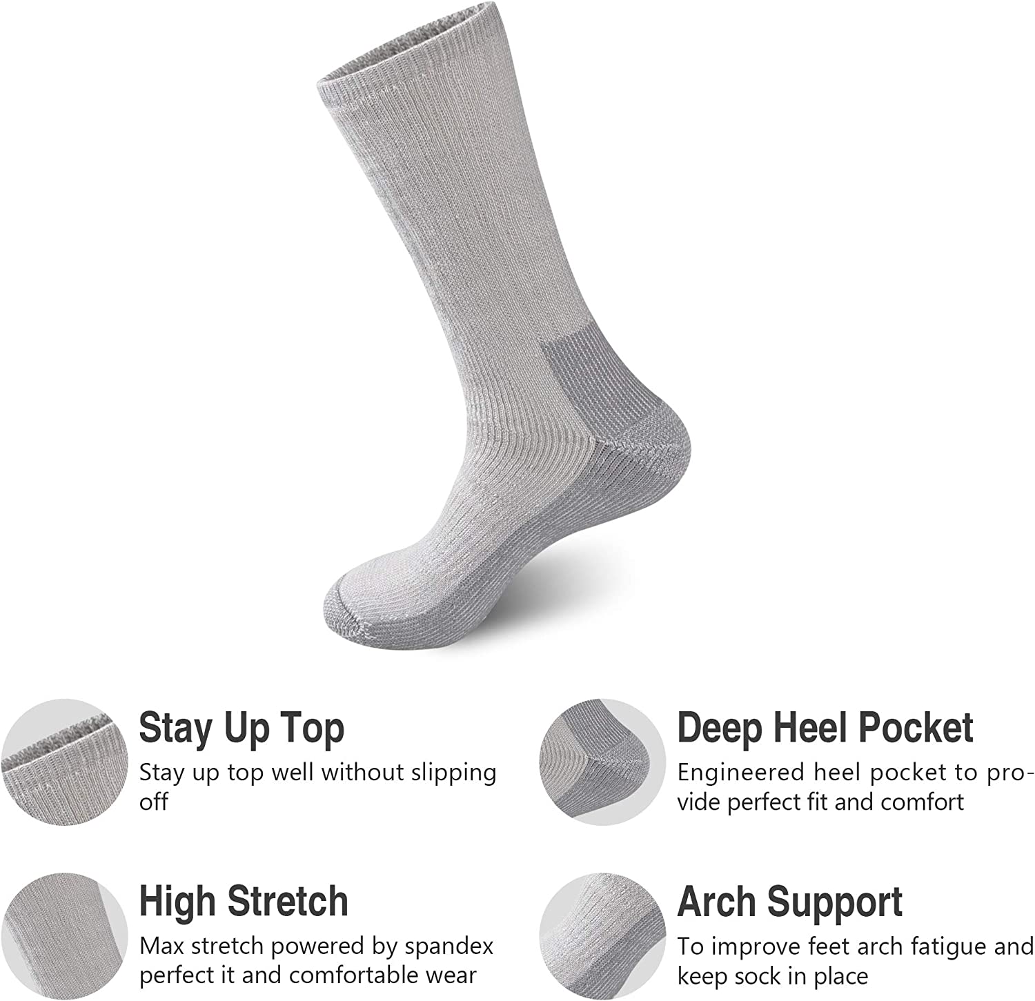 GKX Men's Merino Wool Moisture Wicking Outdoor Hiking Heavy Duty Work Cushion Crew Socks